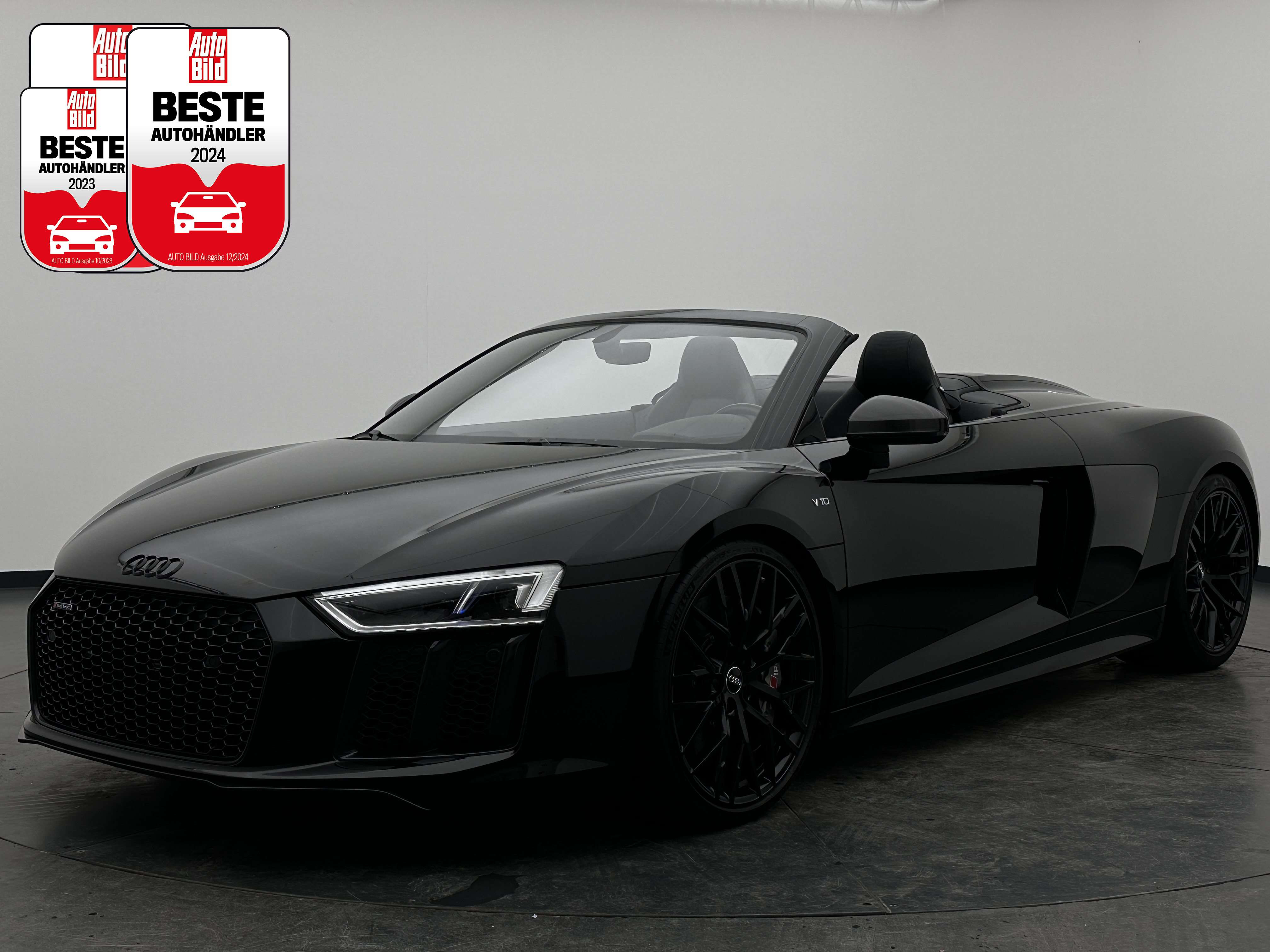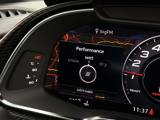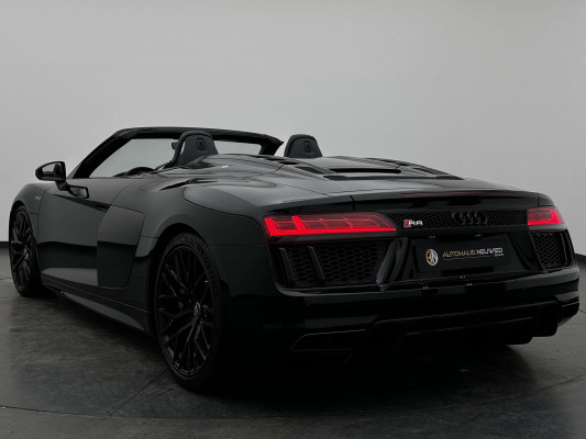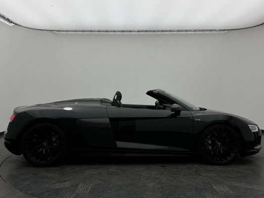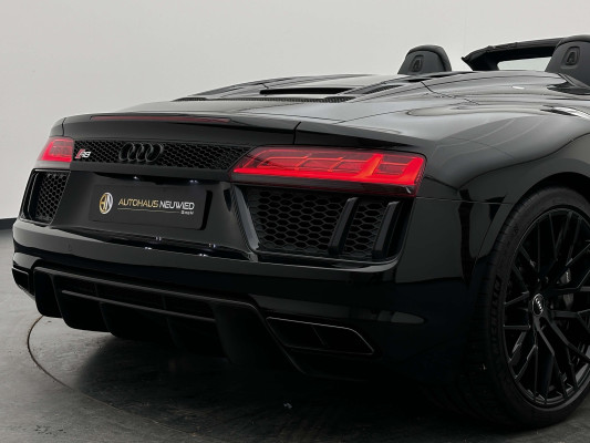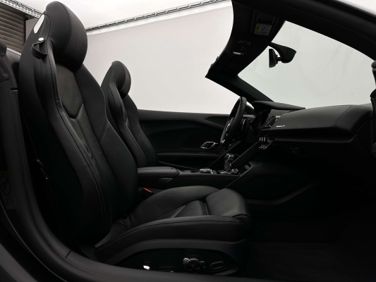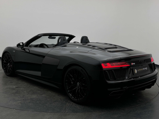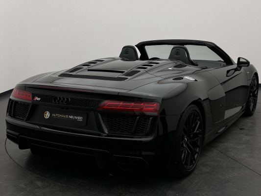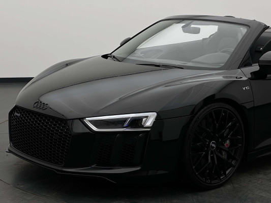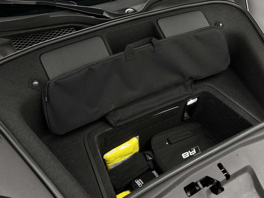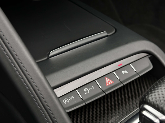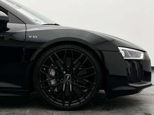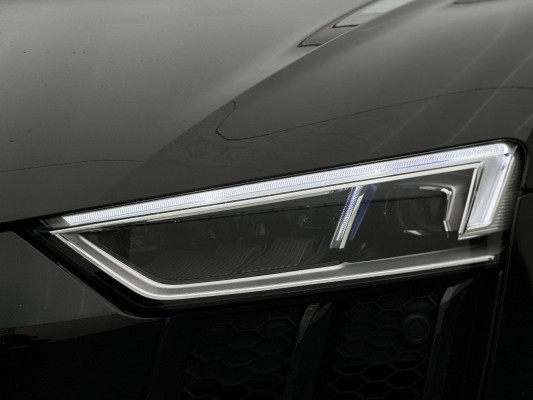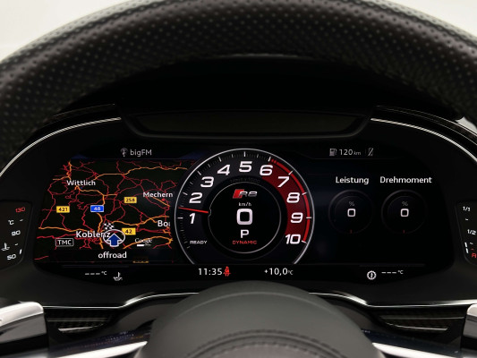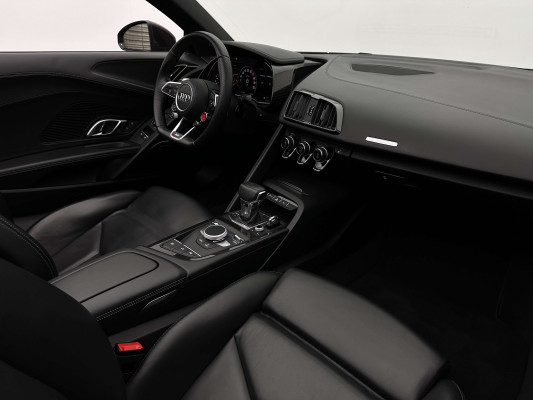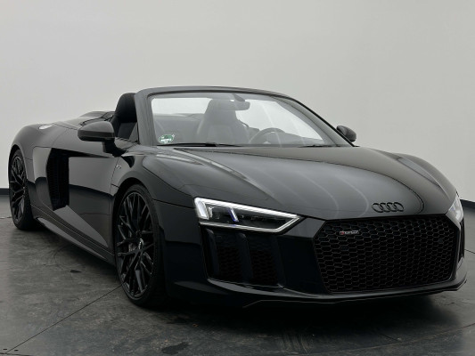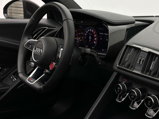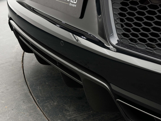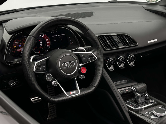 Sonderausstattung:* Außenspiegelgehäuse in Carbon Audi exclusive* Dekoreinlagen Carbon glänzend für Spange am Monoposto, Einlagen in Tür und Schalttafel auf der Beifahrerseite sowie in der Mittelkonsole* Dekoreinlagen erweitert Carbon glänzend für die Einfassung des Audi virtual cockpit und Luftausströmer* Einfassung der Luftauslässe in Carbon glänzend* Einparkhilfe plus mit Rückfahrkamera Funktionen wie Einparkhilfe plus; Bilddarstellung des Bereichs hinter dem Fahrzeug im Audi virtual cockpit; mit dynamischen Anzeigeelementen für die lenkwinkelabhängige berechnete Fahrspur; Hilfs- und Führungslinien sowie Darstellung der Umlenkpunkte beim Längseinparken* Fernlichtassistent erkennt selbsständig Scheinwerfer des Gegenverkehrs, Rückleuchten von anderen Verkehrsteilnehmern sowie Ortschaften und Schilder. Je nach Verkehrssituation wird das Fernlicht automatisch ein- oder ausgeschaltet. Das System verbessert somit Sicht und Sicherheit des Fahrers und sorgt für einen Zugewinn an Komfort durch entspannteres Fahren.* Geschwindigkeits-Regelanlage für konstant haltende Geschwindigkeit ab ca. 30km/h* Keramikbremse 6-Kolben-Festsattelbremse vorn, 4-Kolben-Festsattelbremse hinten; Bremsscheiben aus kohlefaserverstärkter Keramik mit speziell entwickelten Kühlkanälen, innenbelüftet, gelocht und schwimmend gelagert; Bremssättel vorn und hinten anthrazit* LED-Scheinwerfer mit Audi Laserlicht und dynamischem Blinklicht mit Abblendlicht, Laser-Zusatzfernlicht, Tagfahrlicht, Blinklicht mit dynamisierter Anzeige und statischem Abbiegelicht in LED-Technologie; minimaler Energiebedarf, hohe Lebensdauer und besonders gute Wahrnehmung durch andere Verkehrsteilnehmer. Der Laser-Spot ergänzt das LED-Fernlicht ab einer Geschwindigkeit von 60 km/h und bringt dem Fahrer aufgrund der hohen Reichweite ein großes Plus an Sicht und Sicherheit. Blaue LED-Ambientebeleuchtung* Lackierung der Sideblades in Carbon glänzend* Lackierung: Metallic* Lederausstattung Vollleder Feinnappa Sitzbezüge inklusive Gurtschlaufen, Hutze, Monoposto, Kniepad, Mittelkonsole oben inklusive Armauflage, Armauflagen in den Türen und Türzuziehgriffe sowie die Türverkleidungseinsätze in Leder. Folgende Umfänge zusätzlich in Leder: Schalttafel unten, Türbrüstungen, Türverkleidungen, Rückwandbrüstung, Seitenverkleidungen, Lenkradkranz inklusive Pralltopf und Mittelkonsole unten* Lederlenkrad R8-Performance-Lenkrad mit Multifunktion plus, 4 Bediensatelliten und Performance-Modus im 3-Speichen-Design, unten abgeflacht, mit R8-Emblem, mit Bezug in perforiertem Leder, Schaltwippen mit Applikation in Aluminiumoptik zur Bedienung von Audi drive select, Engine-Start-Stop-Funktion, Performance-Modus, Abgasklappensteuerung* Motorraumabdeckung in Carbon glänzend* Paket Exterieur in Carbon Audi exclusive Frontspoiler und Diffusor in Carbon glänzend* Paket: Optikpaket Titanschwarz* Pedalerie und Fußstütze in Edelstahl* Rad: Aluminium Schmiederäder (4 Stück) im "10-Speichen-Y-Design", in Anthrazitschwarz, glänzend vorne 8,5 J X 20 mit Reifen 245/30 R 20 hinten 11 J X 20 mit Reifen 305/30 R 20* Rad: Wagenheber* Radiozubehör: Digitaler Radioempfang * Sitzbezug: Farbnähte für Volllederausstattung Feinnappa* Sportabgasanlage 2-flutig, mit schwarz glänzenden trapezförmigen Endrohrblenden; für ein gesteigertes Sounderlebnis* Telefon: Audi Phone Box mit Wireless Charging* Telefon: Audi connect komfortable Anbindung Ihres Fahrzeugs* Telefon: Audi smartphone interface für Apple CarPlay und Google Android Auto