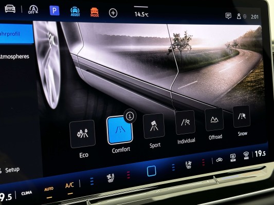 Sonderausstattung:* Anhängevorrichtung inkl. Anhängerrangierassistent "Trailer Assist" - Anhängevorrichtung anklappbar, mit elektrischer Entriegelung* Head-up-Display* IQ.LIGHT - HD-Matrix-Scheinwerfer - 3D-LED-Rückleuchten mit dynamischer Blinkleuchte - Dynamischer Fernlichtassistent "Dynamic Light Assist" - IQ.LIGHT - HD-Matrix-Scheinwerfer (Welcome & Goodbye-Lichtprojektion, dynamischer Blinker sowie Umfeldbeleuchtung mit Motivprojektion aus den Seitenspiegeln)* Lackierung: Metallic-Sonderlackierung* Paket: Assistenzpaket "IQ.Drive" - Außenspiegel elektrisch einstell-, anklapp- und beheizbar, auf Fahrerseite abblendend, Memory-Funktion - Fahrassistent "Travel Assist", Spurhalteassistent "Lane Assist" und "Emergency Assist" - Proaktives Insassenschutzsystem - Umgebungsansicht "Area View" inkl. Rückfahrkamera "Rear View* Paket: Infotainment-Paket inkl. Navigationssystem "Discover Pro Max" - 2 USB-C-Schnittstellen vorn, 2 USB-C-Ladebuchsen an der Mittelkonsole hinten; Ladeleistung bis zu 45 W - Head-up-Display - Infotainment-System mit 38-cm-Display (15 Zoll) und Touchscreen - Navigationssystem - Sprachassistent IDA und elektronische Sprachverstärkung - Telefonschnittstelle "Comfort" mit induktiver Ladefunktion für 2 Smartphones, Ladeleistung bis zu 15 W* Paket: Infotainment-Paket inkl. Navigationssystem "Discover" - 2 USB-C-Schnittstellen vorn, 2 USB-C-Ladebuchsen an der Mittelkonsole hinten; Ladeleistung bis zu 45 W - Navigationssystem - Sprachassistent IDA und elektronische Sprachverstärkung - Telefonschnittstelle "Comfort" mit induktiver Ladefunktion für 2 Smartphones, Ladeleistung bis zu 15 W* Paket: Komfortpaket inkl. Memory-Funktion für Parkassistent, mit SAFE-Verriegelung - Diebstahlwarnanlage mit Innenraumüberwachung, Back-up-Horn und Abschleppschutz - Heckklappe mit sensorgesteuerter Öffnung und zeitverzögerter elektrischer Schließung, mit Fernentriegelung - Memory-Funktion für Parkassistent - Schlüsselloses Schließ- und Startsystem "Keyless Access", mit SAFE-Verriegelung* Paket: Lederpaket "Varenna" mit ergoActive-Plus-Sitzen vorn (R-Line) - Multifunktions-Sportlenkrad in Leder, beheizbar, mit Schaltwippen - Scheibenwaschdüsen vorn automatisch beheizt - Sicherheitsoptimierte Kopfstützen vorn, längs- und höheneinstellbar - Sitzmittelbahnen der Vordersitze und der äußeren Rücksitzplätze in Leder - Vordersitze beheizbar - Vordersitze mit Massageprogrammen und aktiver Klimatisierung - ergoActive-Sitze vorn mit elektrischer Einstellung, Memory-Funktion und verschiebbarer Oberschenkelauflage* Paket: Winterpaket "Premium" inkl. Standheizung (R-Line) - Frontscheibe in Verbundsicherheitsglas, drahtlos beheizbar und infrarot-reflektierend, geräuschdämmend - Multifunktions-Sportlenkrad in Leder, beheizbar, mit Schaltwippen - Scheibenwaschdüsen vorn automatisch beheizt - Standheizung und -lüftung mit Funkfernbedienung und Vorwahluhr - Vordersitze und äußere Rücksitze beheizbar* Paket: Winterpaket inkl. Lenkrad beheizbar (R-Line) - Multifunktions-Sportlenkrad in Leder, beheizbar, mit Schaltwippen - Scheibenwaschdüsen vorn automatisch beheizt - Vordersitze beheizbar* Panorama-Ausstell-/Schiebedach mit Panoramadach hinten* Progressivlenkung* Räder: Leichtmetall (4) "Leeds" 8,5 J x 20 in Schwarz/Grau, Oberfläche glanzgedreht, Volkswagen R - Airstop-Reifen 255/40 R 20 - Radsicherungen mit erweitertem Diebstahlschutz* Räder: Tire Mobility Set - 12-Volt-Kompressor und Reifendichtmittel* Soundsystem "Harman Kardon" - Gepäckraumboden - Soundsystem "Harman Kardon", 10+1 Lautsprecher, 700 Watt Gesamtleistung, digitaler 16-Kanal-Verstärker, Subwoofer* Verbundsicherheitsglas geräuschdämmend für Türscheiben - Heck- und Seitenscheiben hinten abgedunkelt+Serie:
